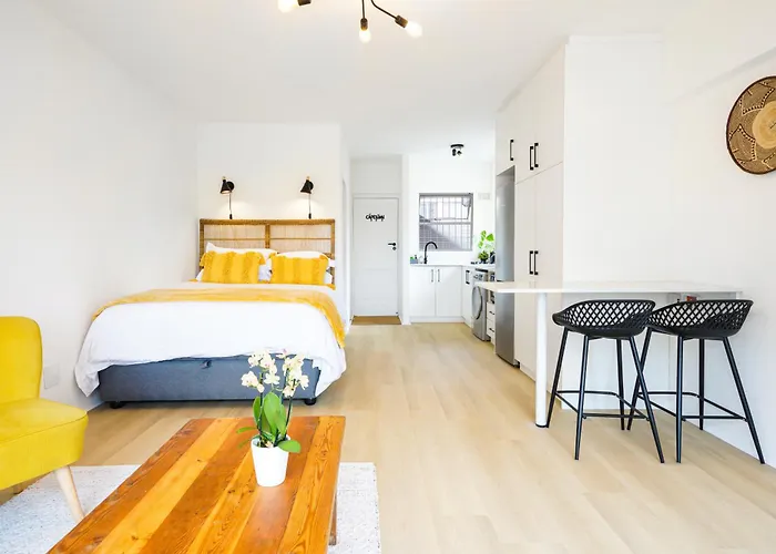 O Sunny Studio With Ocean Views And Free Parking In Green Point está equipado com cozinha totalmente equipada. A paragem de autocarro Skye Way fica com fácil acesso para do apartamento de 1 quartos.